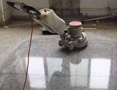 石材表面被輕微劃傷,可采用輕度翻新工序進(jìn)行翻新處理。使用800#金鋼石水磨片加清水打磨十分鐘,在打磨過(guò)程中加水,以保持地面濕潤(rùn),
