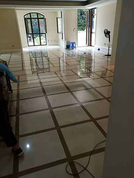 翻新程序全部完成后,用清水洗凈并吸干石材表面的水,大理石輕度翻新
